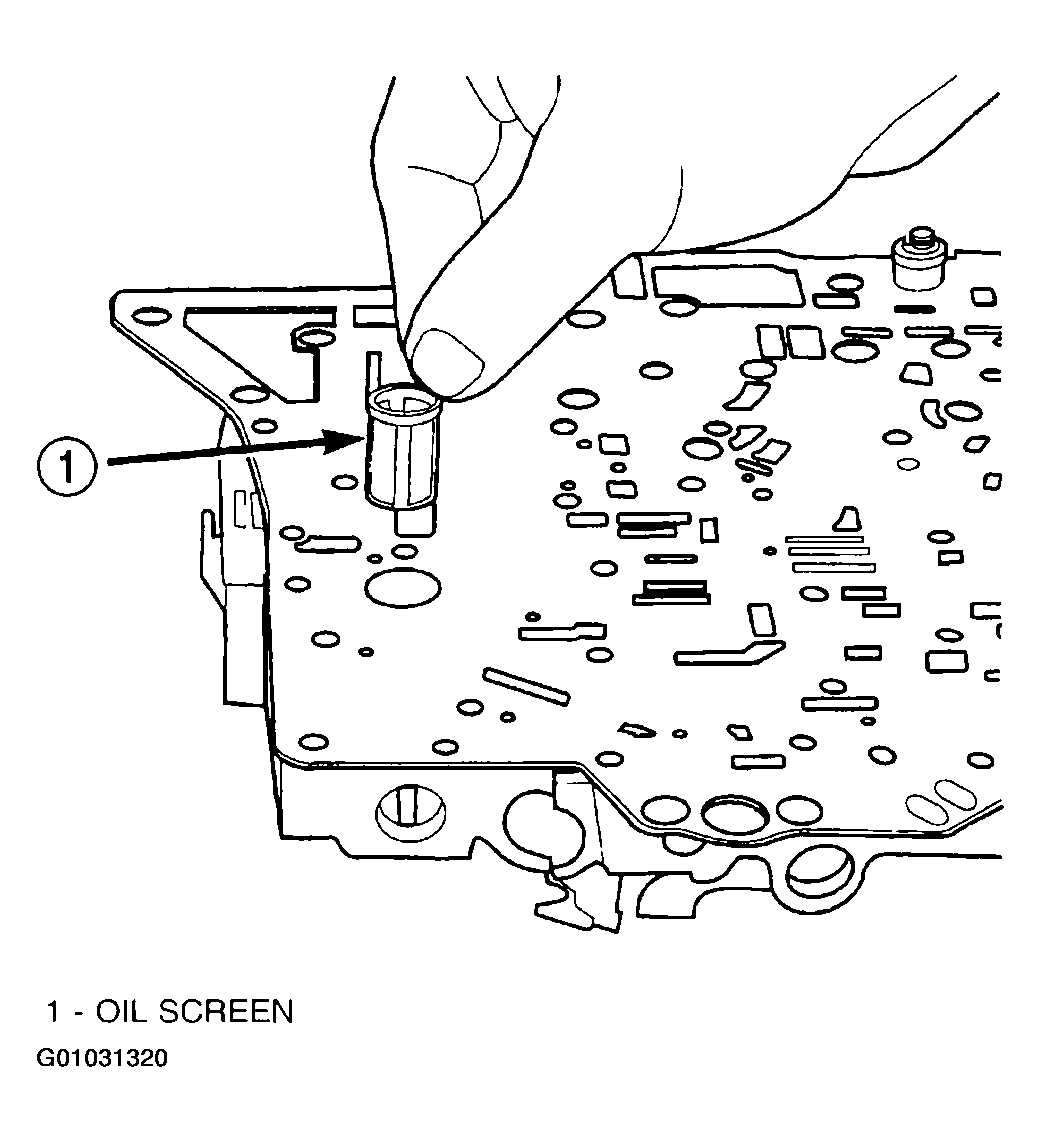 - Install transfer plate to valve body and separator plate. Make sure oil screen and #5 check valve do not bind. (Fig 9).