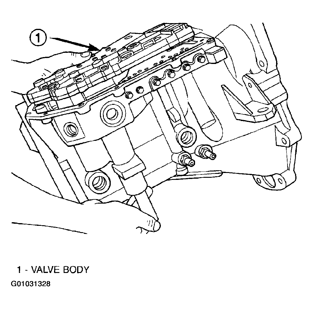 - Install valve body assembly to transaxle. (Fig 1). Install and torque valve body-to-transaxle case bolts to 12 N.m (105 in. lbs.). (Fig 2).
