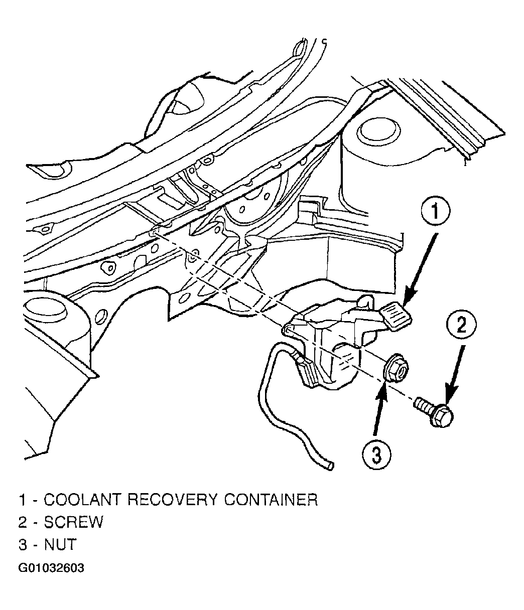 - Install coolant recovery container and tighten fasteners to 4 N.m (35 in. lbs.). (Figure).
