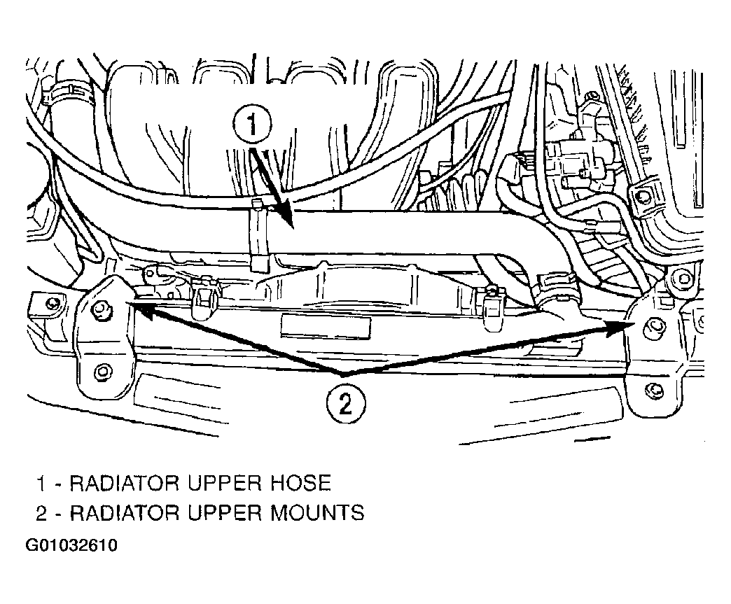 - Install the radiator upper hose. Align the hose and position the clamp to prevent interference with the engine or the hood.