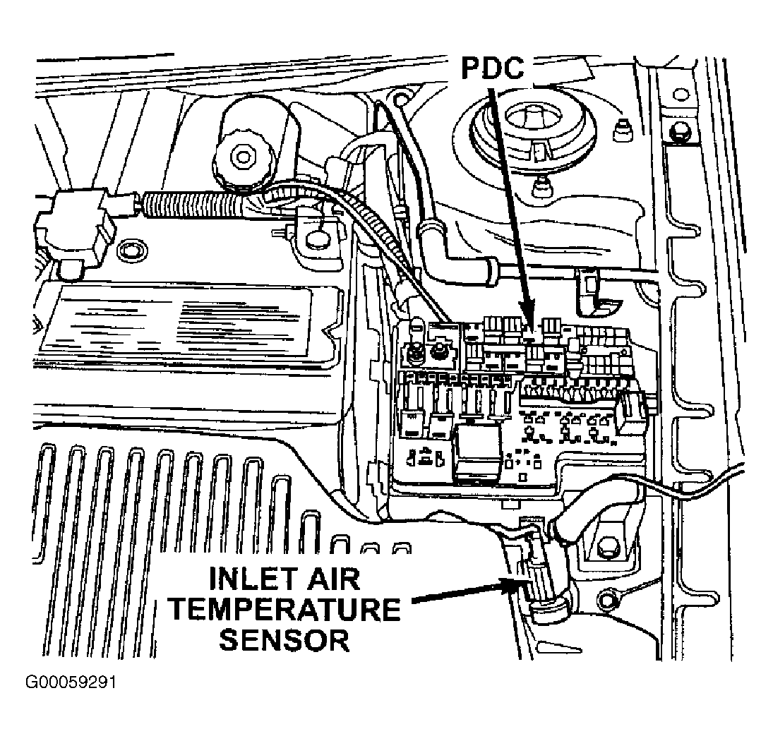 - Turn ignition off. Remove fuel pump relay from PDC. See Figure . PDC is located in engine compartment. See Figure . Connect a test light between ground and fused battery voltage circuit (Red/White wire) at terminal No. 60 at fuel pump relay harness connector in PDC. See Fig 2 . If test light illuminates, go to next step. If test light does not illuminate, repair open in fused battery voltage circuit.