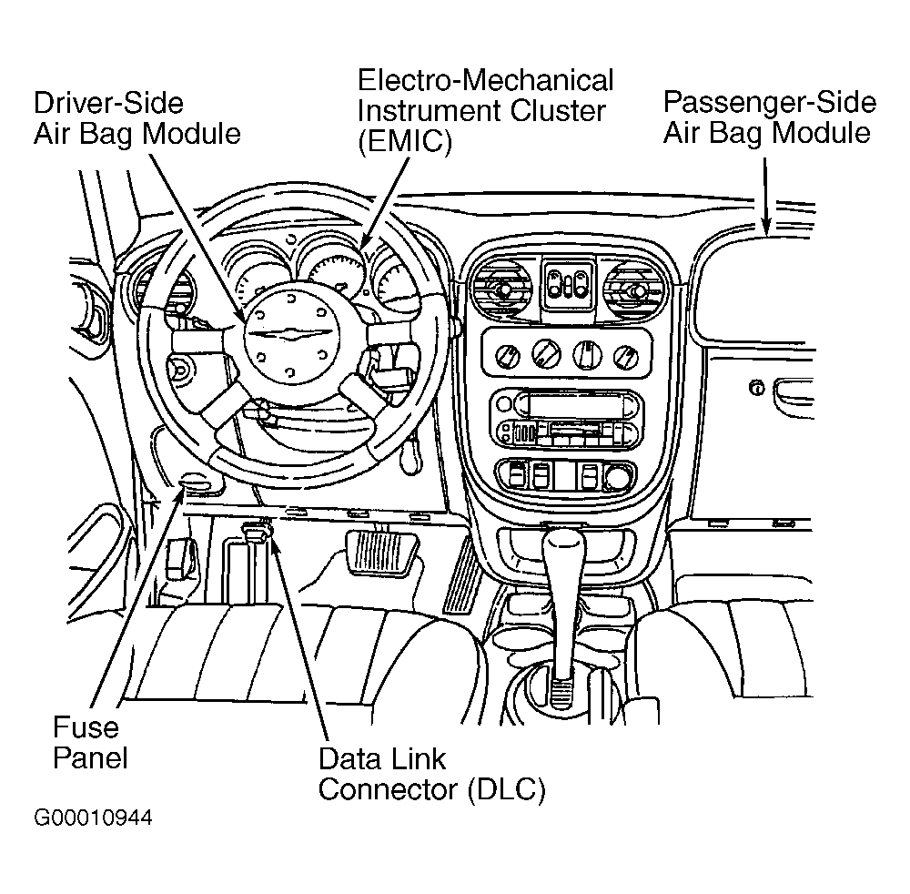 - Ensure ignition is off. Connect scan tool to Data Link Connector (DLC). DLC is located on bottom of instrument panel, to left of brake pedal. See Figure. Turn ignition on.