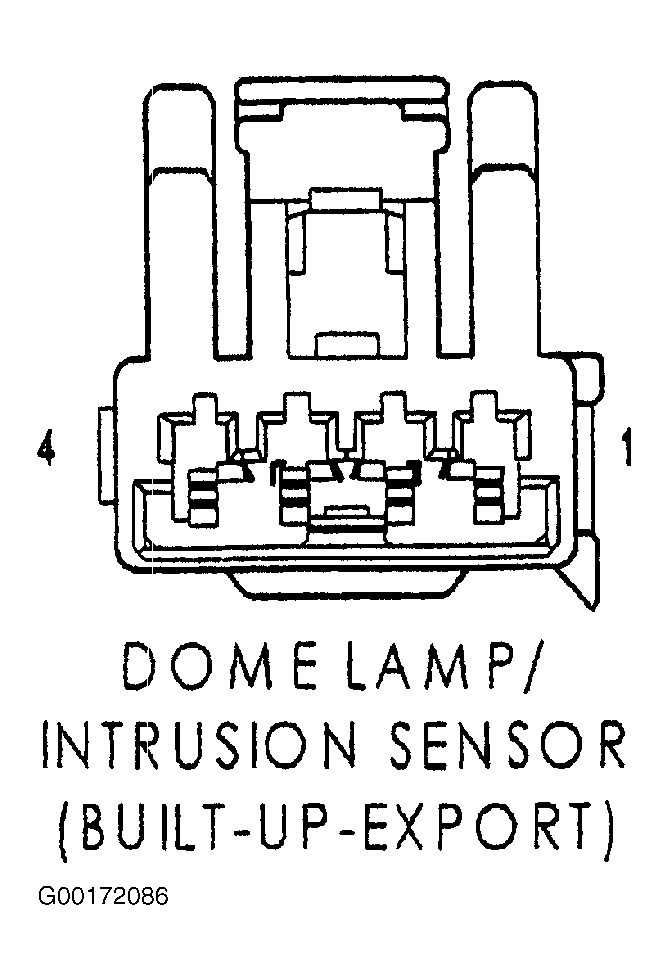 Disconnect the intrusion sensor connector. See Figure. Measure the voltage between the intrusion sensor signal circuit and ground. If the voltage is above 10 volts, replace the intrusion sensor, then see VTSS VERIFICATION TEST under VERIFICATION TESTS. If the voltage is below 10 volts, replace the remote keyless entry module, then see BODY VERIFICATION TEST under VERIFICATION TESTS.