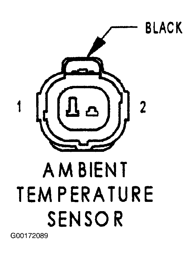 - Turn the ignition off. Disconnect the ambient temperature sensor harness connector. See Fig 1. Measure the resistance of the ambient temperature sensor using the following values indicated below. See AMBIENT TEMPERATURE SENSOR RESISTANCE table. If the ambient temperature sensor resistance measures between the min/max specifications, go to the next step. If the ambient temperature sensor resistance does not measure between the min/max specifications, replace the ambient temperature sensor.AMBIENT TEMPERATURE SENSOR RESISTANCE
