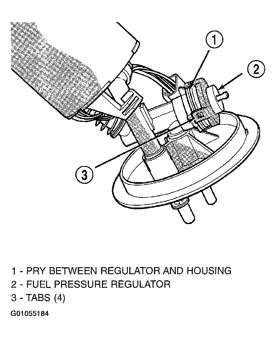 The fuel pressure regulator is part of the fuel pump module (Figure). Remove the fuel pump module from the fuel tank to access the fuel pressure regulator (Refer to FUEL PUMP MODULE - REMOVAL ).