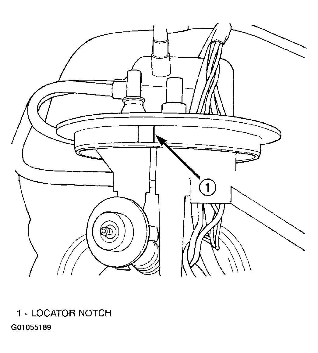 The fuel pump module has a locator notch that has to fit into the fuel tank to correctly align the two parts (Fig 1) and (Fig 2). Align the marks to correctly position the pump module.
