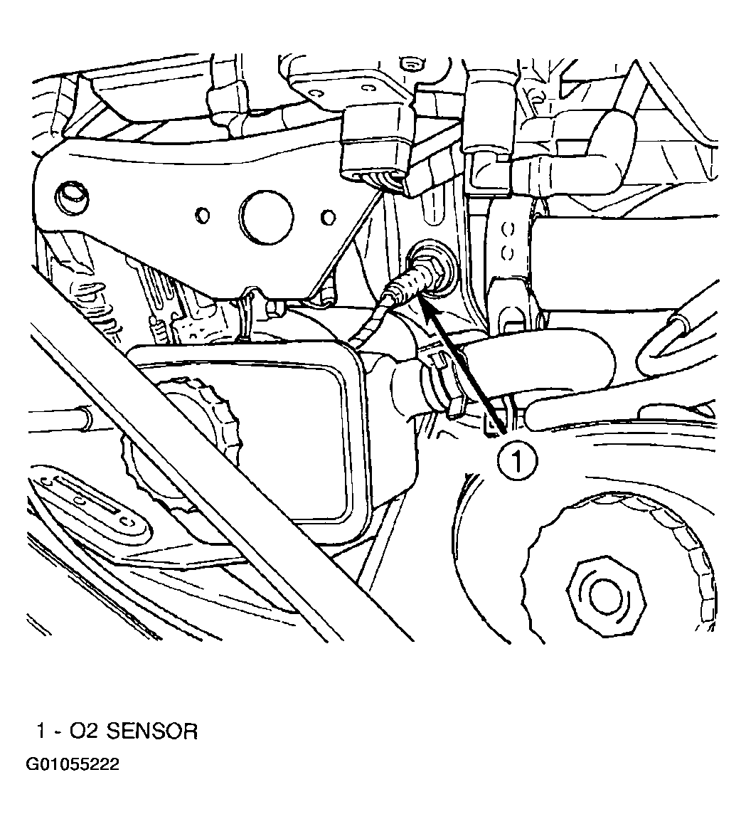 THE EXHAUST MANIFOLD, EXHAUST PIPES AND CATALYTIC CONVERTER BECOME VERY HOT DURING ENGINE OPERATION. ALLOW ENGINE TO COOL BEFORE REMOVING OXYGEN SENSOR.
