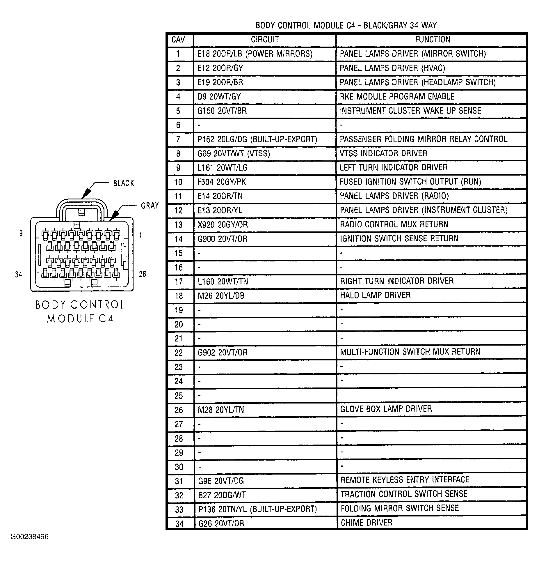 - Turn ignition switch to OFF position. Disconnect Body Control Module (BCM) connector C4. See Figure. Measure resistance in Gray/Pink wire between rear zone control panel connector terminal No. 1 and BCM connector C4 terminal No. 10. See Figure. If reading is less than 5 ohms, replace BCM. See BODY CONTROL MODULE under REMOVAL & INSTALLATION. If reading is 5 ohms or more, repair open on Gray/Pink wire. After either repair, calibrate ATC module. See HVAC CONTROL CALIBRATION under PROGRAMMING.