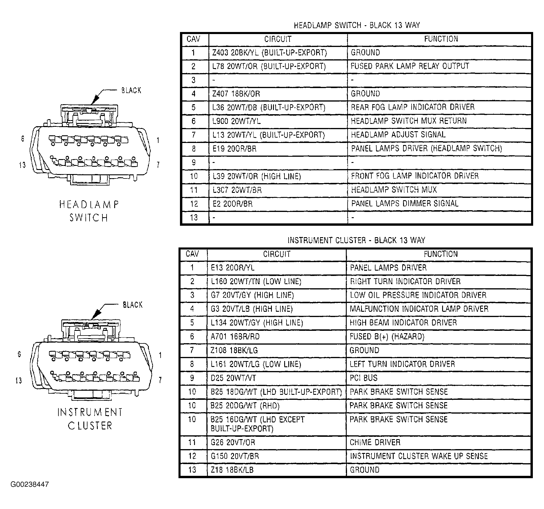 - Turn ignition off. Disconnect headlight switch connector. For removal and installation procedures, see ANALOG INSTRUMENT PANELS article. Connect a fused jumper between headlight switch connector terminals No. 6 (White/Yellow wire) and No. 11 (White/Brown wire). See Figure. Turn ignition on. Using scan tool, select BODY then BODY CONTROL MODULE and monitor HEADLAMP SWITCH voltage. If HEADLAMP SWITCH voltage is greater than 0.5 volt, go to next step. If HEADLAMP SWITCH voltage is less than 0.5 volt, replace headlight switch.