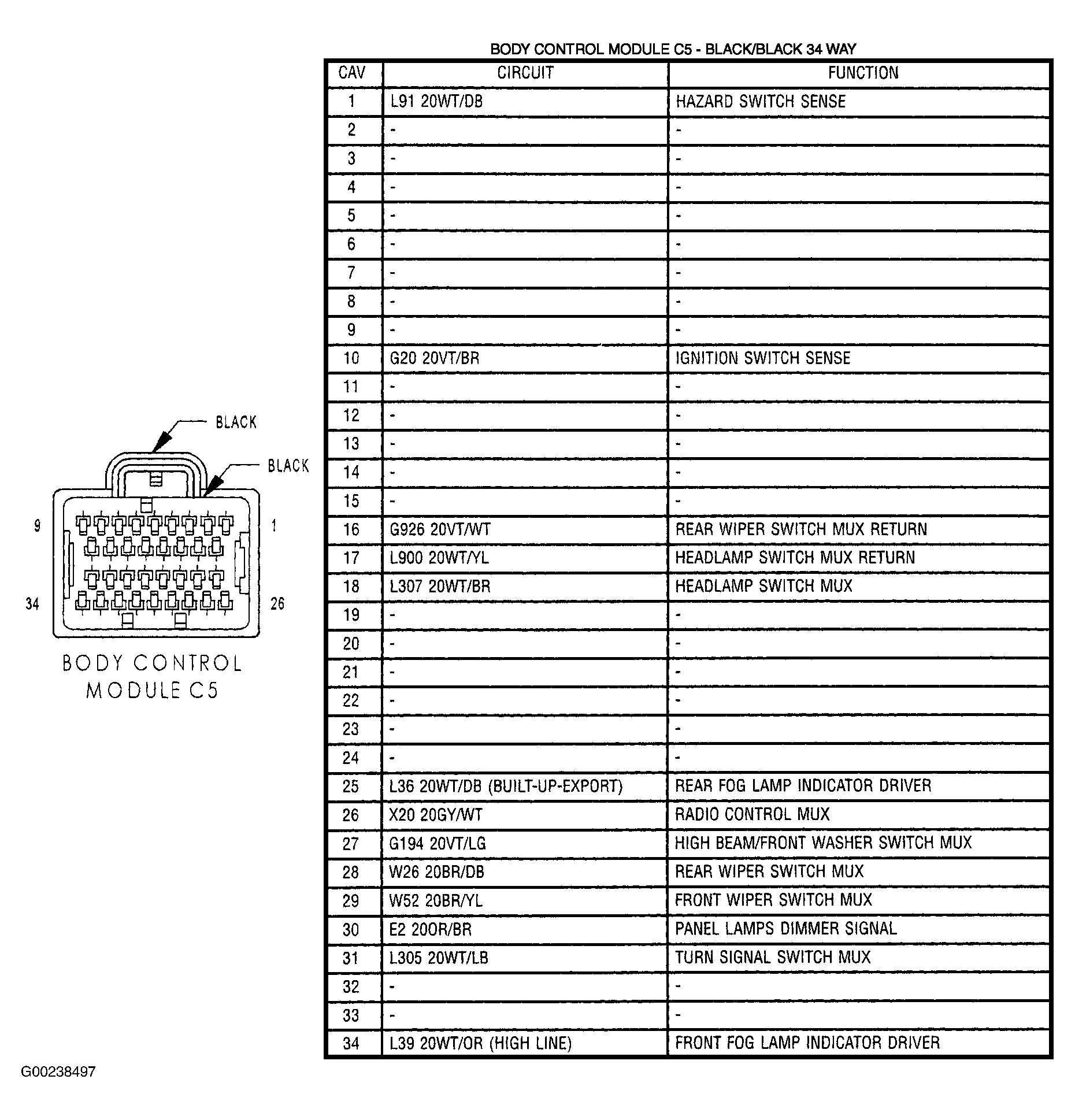 - Turn the ignition off. Disconnect the Headlamp Switch harness connector. See Figure. Disconnect the Body Control Module C5 connector. See Figure. Measure the resistance of the Panel Lamps Dimmer Signal Circuit to ground. If the resistance is below 1000 ohms, repair the Panel Lamps Dimmer Signal Circuit for a short to ground. If the resistance is above 1000 ohms, go to the next step.