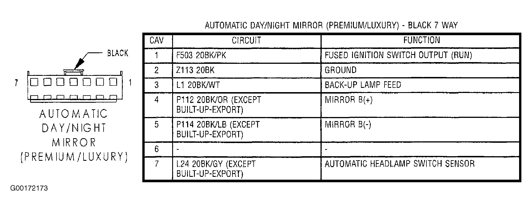 - Turn the ignition off. Disconnect the Automatic Day/Night Mirror harness connector. See Fig 1. Turn the ignition on. Measure the voltage of the Automatic Headlamp Switch Sensor circuit in the Automatic Day/Night Mirror harness connector. If the voltage is 4.9 volts, replace the Automatic Day/Night Mirror. If the voltage is not 4.9 volts, go to the next step.