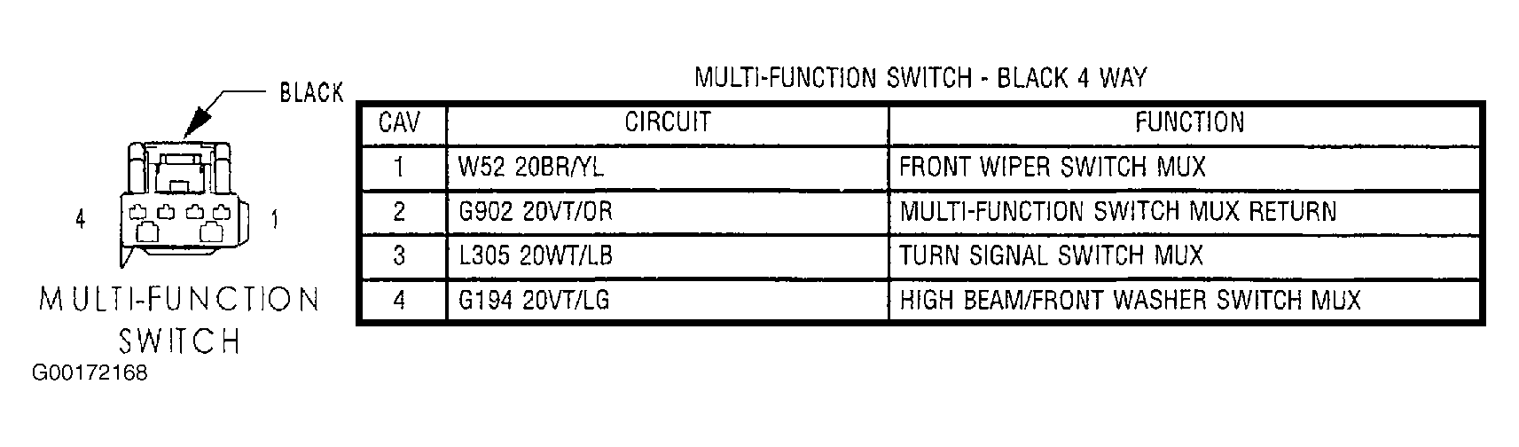 - Turn the ignition off. Disconnect the Multi-Function Switch harness connector. See Figure. Disconnect the BCM C5 harness connector. See Figure. Measure the resistance between ground and the High Beam/Front Washer Switch MUX circuit. If the resistance is below 1000 ohms, repair the High Beam/Front Washer Switch MUX circuit for a short to ground. If the resistance is above 1000 ohms, replace the Front Control Module. See FRONT CONTROL MODULE under REMOVAL & INSTALLATION.