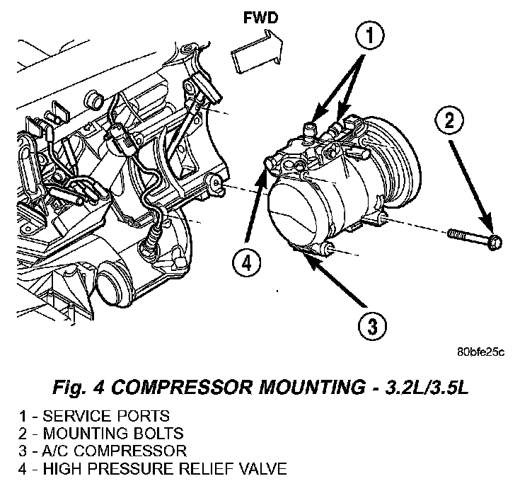 Fig.4 Compressor Mounting - 3.2/3.5L: