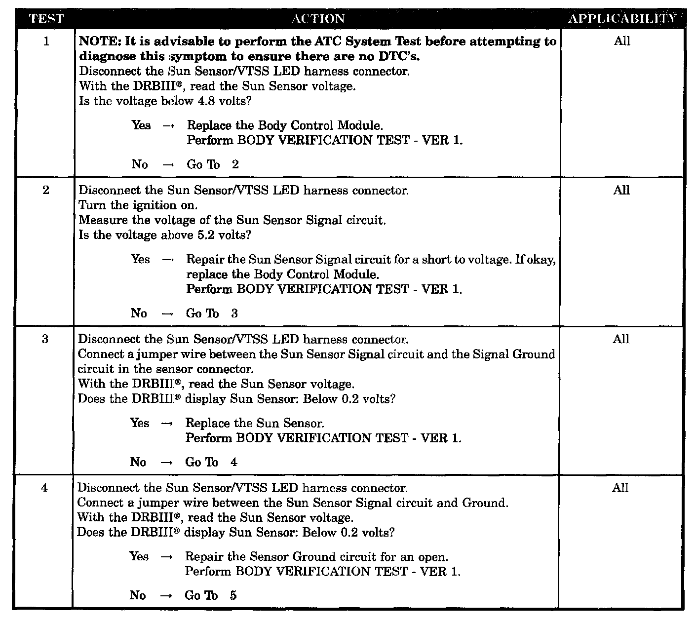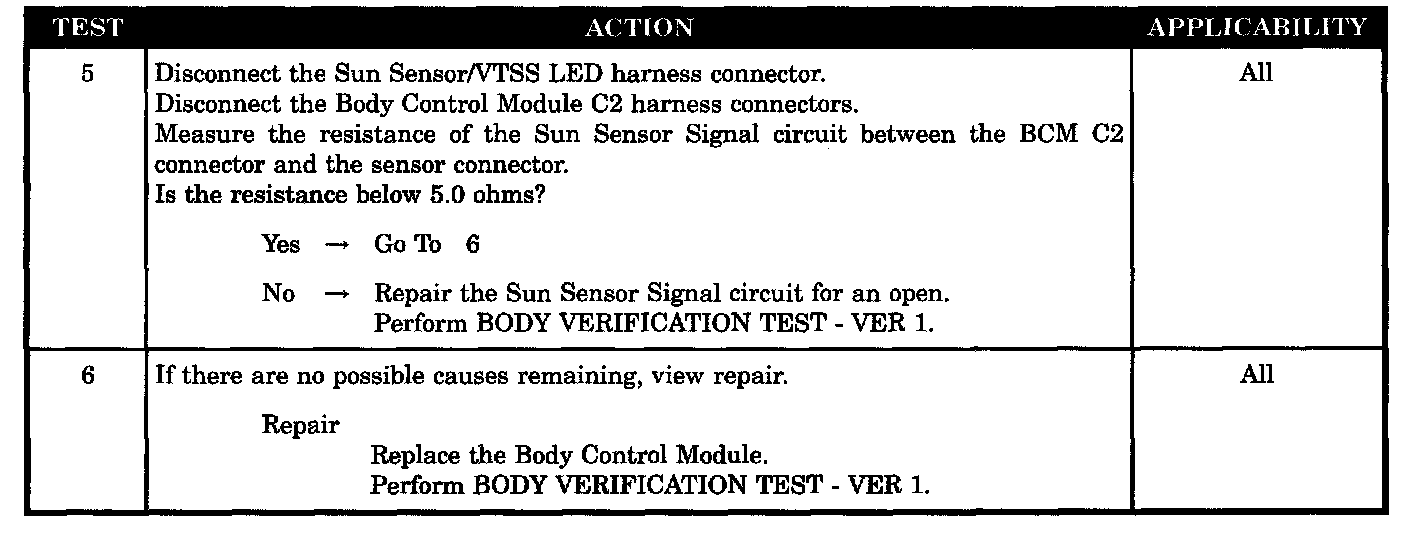 - Body control module - sun sensor open/high