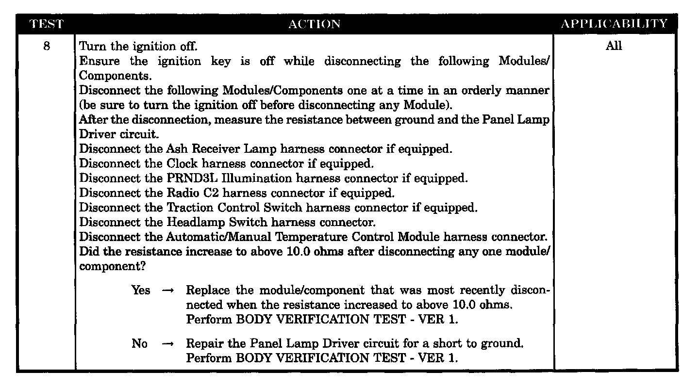 - Checking the panel lamp driver circuit for a shorted to ground