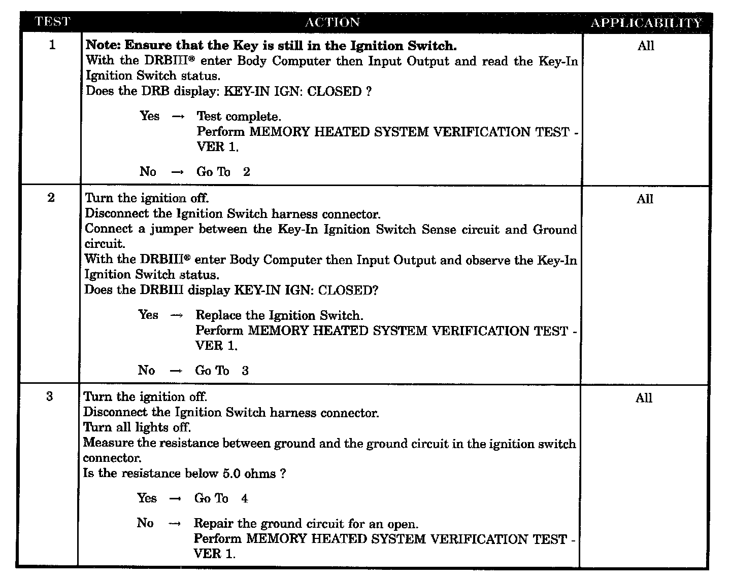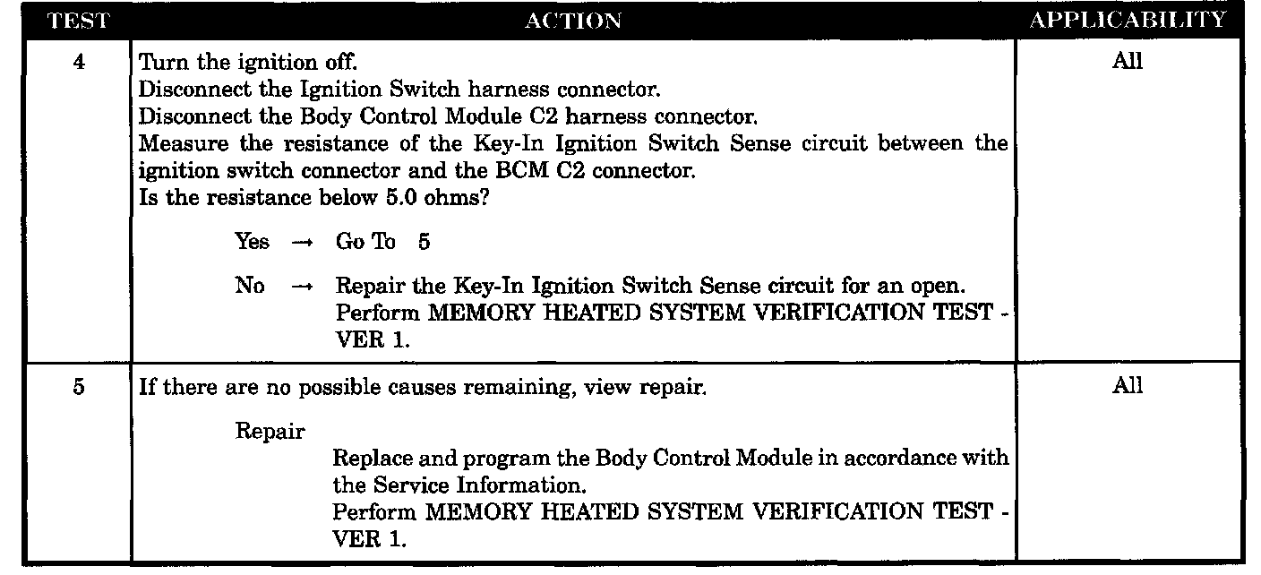Home >> Chrysler >> 2003 >> Intrepid (CANADA) V6-2.7L >> Repair and Diagnosis >> Powertrain Management >> Computers and Control Systems >> Body Control Module >> Testing and Inspection >> Symptom Related Diagnostic Procedures >> Heated Seats Inoperative Due to Key-In Ignition Switch Input