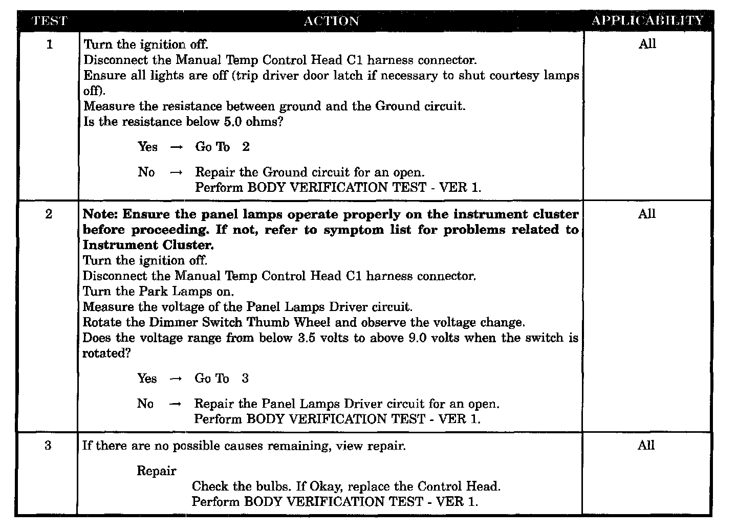 MANUAL A/C CONTROL HEAD ILLUMINATION