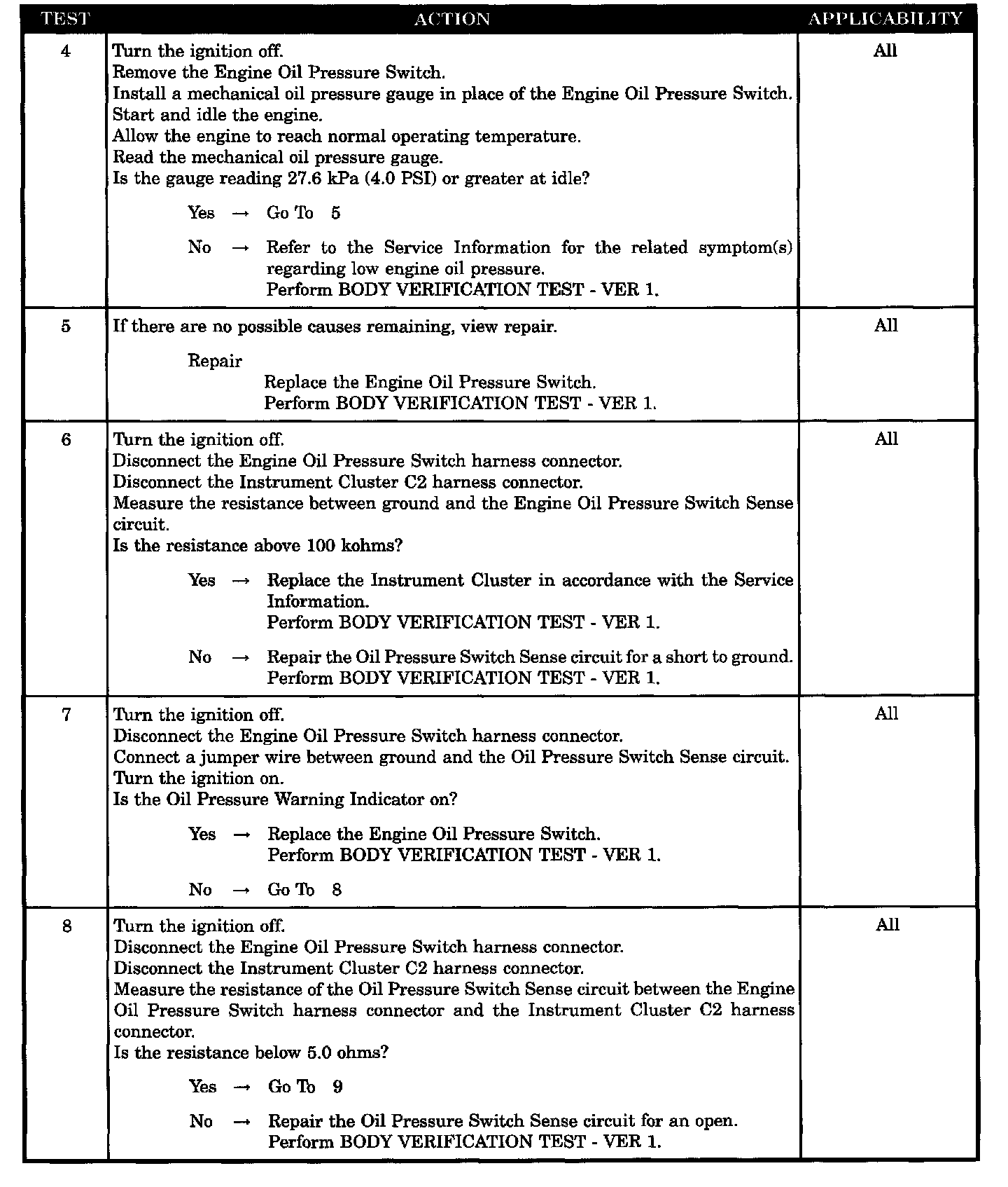 Home >> Chrysler >> 2003 >> Intrepid (CANADA) V6-2.7L >> Repair and Diagnosis >> Powertrain Management >> Computers and Control Systems >> Body Control Module >> Testing and Inspection >> Symptom Related Diagnostic Procedures >> Oil Pressure Warning Indicator Not Operating Properly