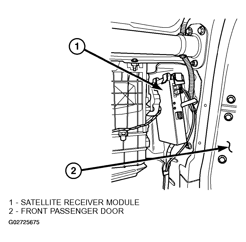 - Pull satellite receiver module inboard, and then downward to remove from upper retaining clips.