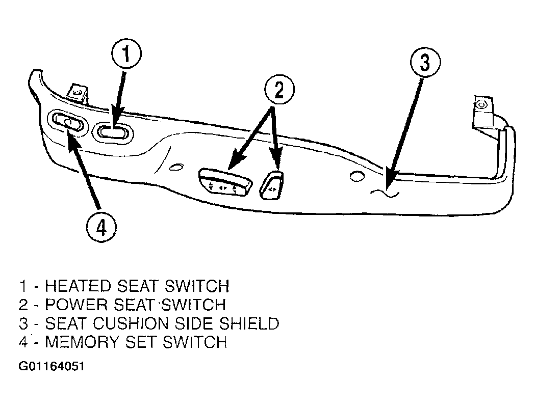 SOME VEHICLES ARE EQUIPPED WITH SEATBACK MOUNTED AIRBAGS. BEFORE ATTEMPTING TO DIAGNOSE OR SERVICE ANY SEAT OR POWER SEAT SYSTEM COMPONENT YOU MUST FIRST DISCONNECT AND ISOLATE THE BATTERY NEGATIVE CABLE. THEN WAIT TWO MINUTES FOR THE SYSTEM CAPACITOR TO DISCHARGE BEFORE FURTHER SYSTEM SERVICE. THIS IS THE ONLY SURE WAY TO DISABLE THE AIRBAG SYSTEM. FAILURE TO DO SO COULD RESULT IN ACCIDENTAL AIRBAG DEPLOYMENT AND POSSIBLE PERSONAL INJURY.