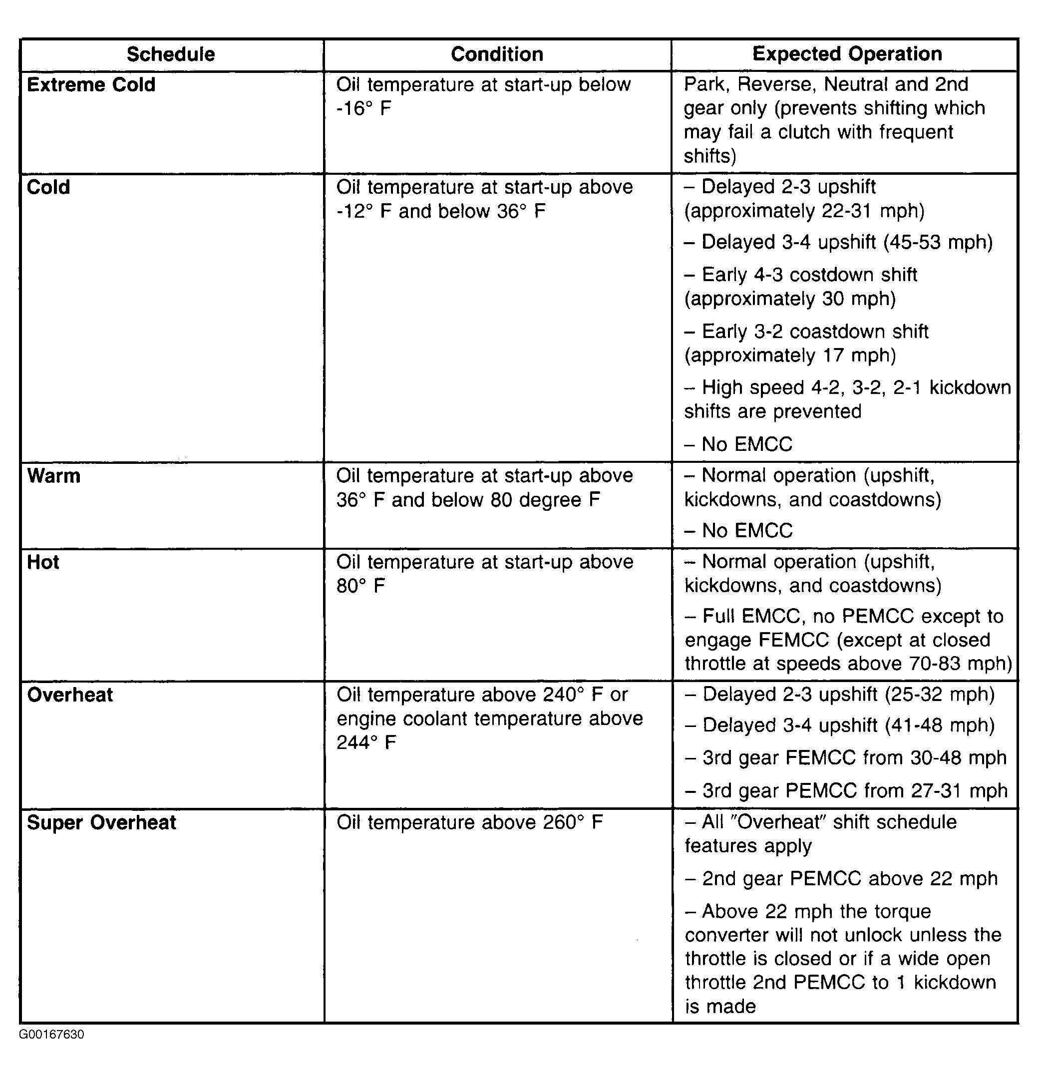The PCM has programming that allows it to select a variety of shift schedules. Shift schedule selection is dependent on the following: