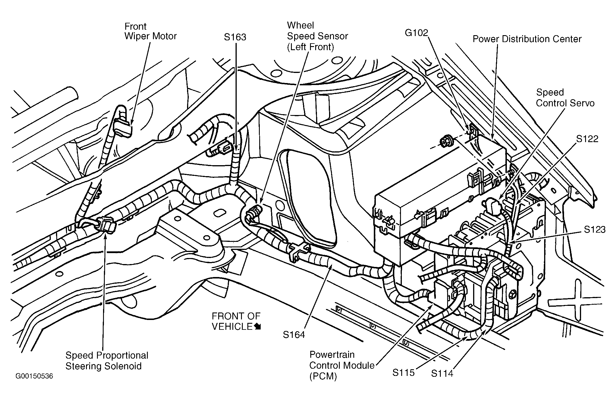 | Powertrain Control Module (PCM) | On left side of engine compartment. See Figure. |