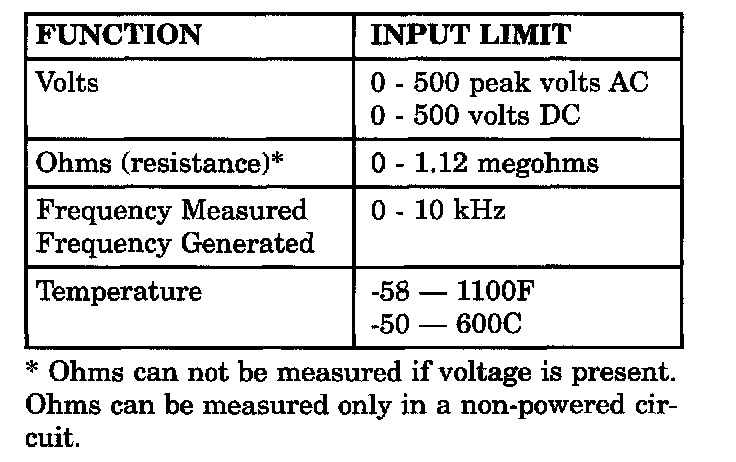 WARNING: EXCEEDING THE LIMITS OF THE DRB III (R) MULTIMETER IS DANGEROUS. IT CAN EXPOSE YOU TO SERIOUS OR POSSIBLE FATAL INJURY. CAREFULLY READ AND UNDERSTAND THE CAUTIONS AND THE SPECIFICATION LIMITS.