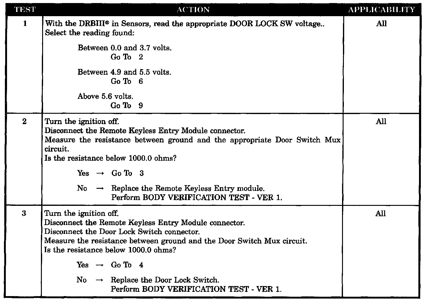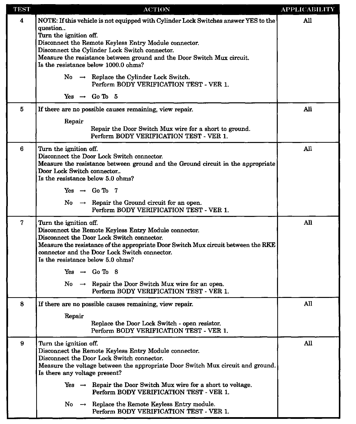 - Door lock switch - short to ground