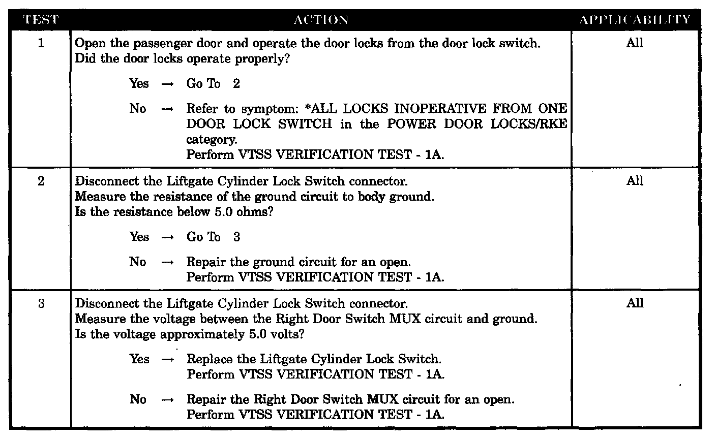 VTSS FAILS TO ARM FROM LIFTGATE CYLINDER LOCK SWITCH (EXPORT ONLY)