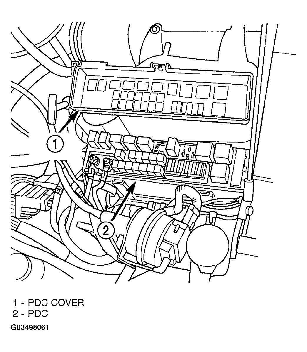 The relay is located in the Power Distribution Center (PDC) (Fig 1 ). For the location of the relay within the PDC, refer to the PDC cover for location. Check electrical terminals for corrosion and repair as necessary.