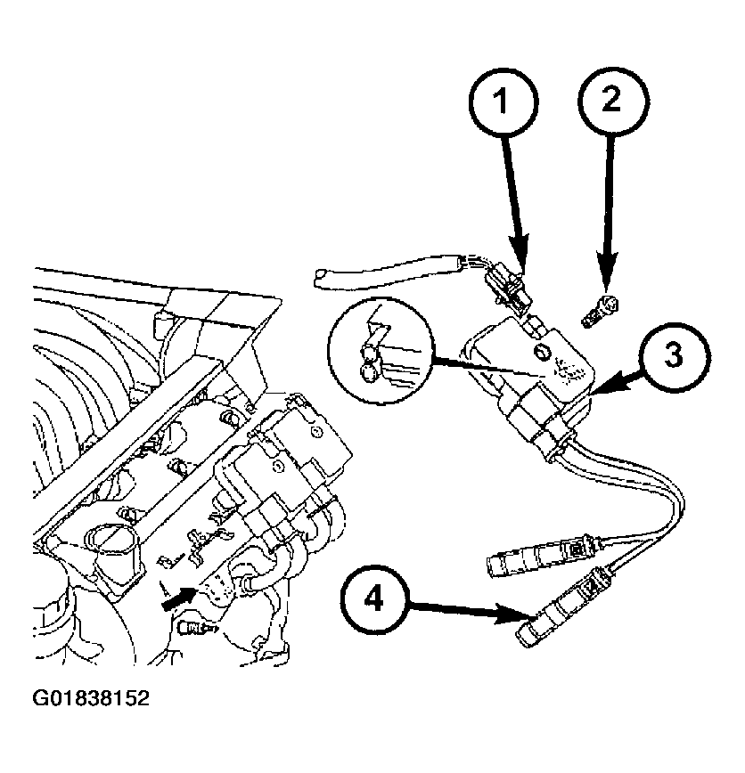 - Position the ignition coil (3) on the cylinder head cover. See Figure.