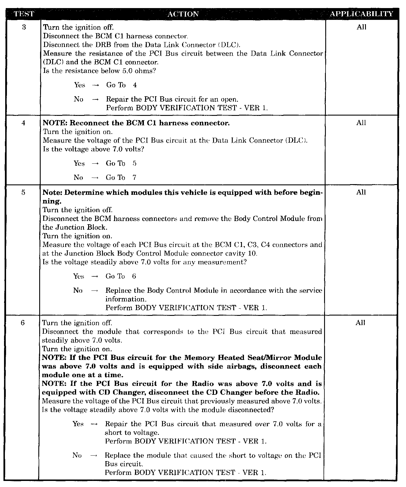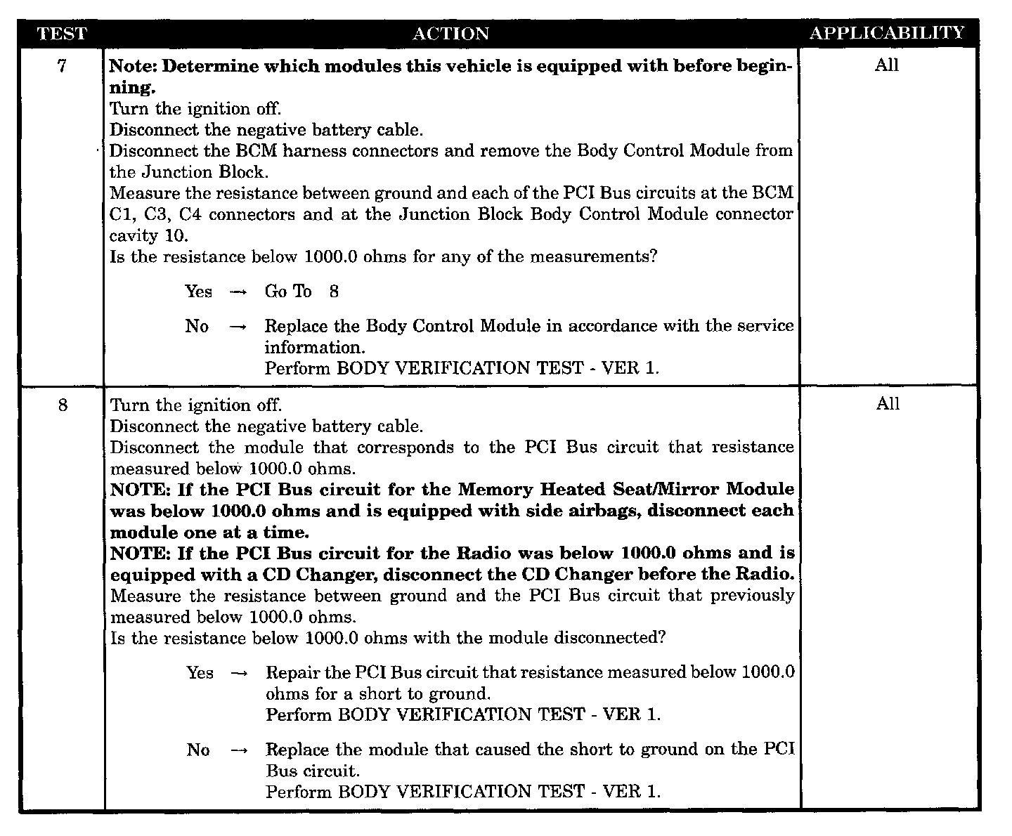 - Low Resistance To Ground On The PCI Bus Circuits at the BCM Connectors