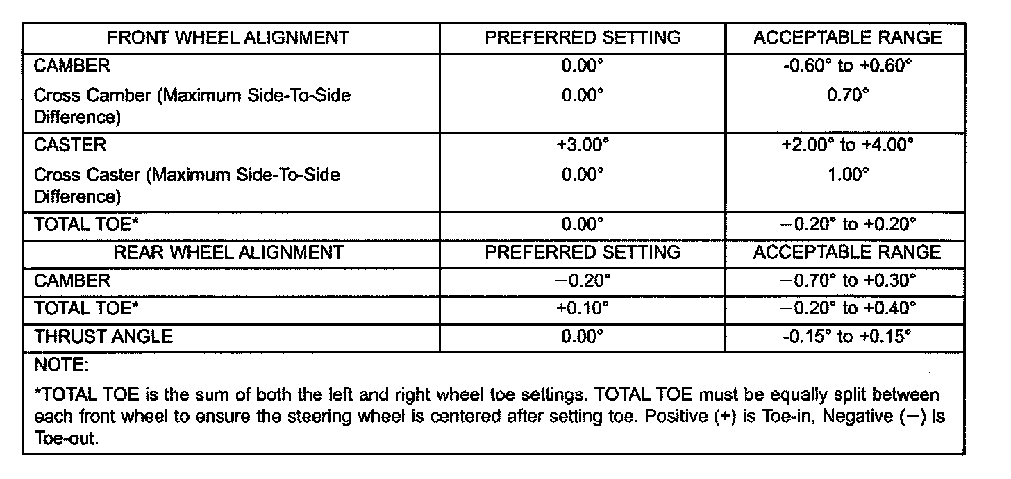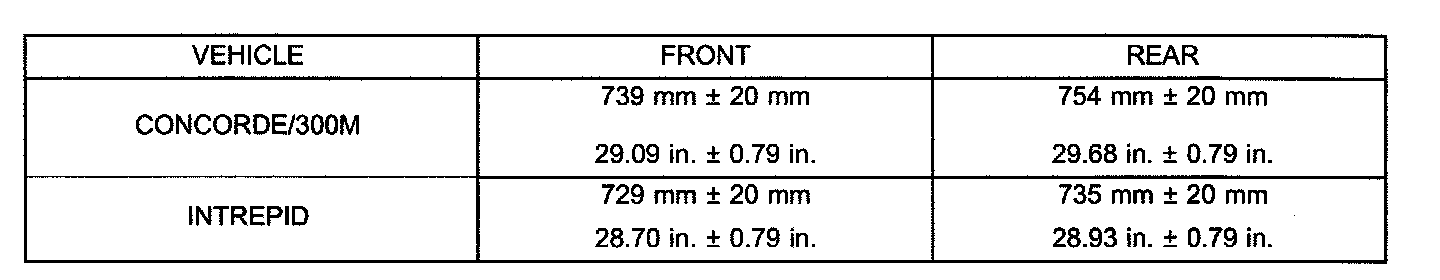 NOTE: All wheel alignments are to be set with the vehicle at curb height. Refer to CURB HEIGHT MEASUREMENT.