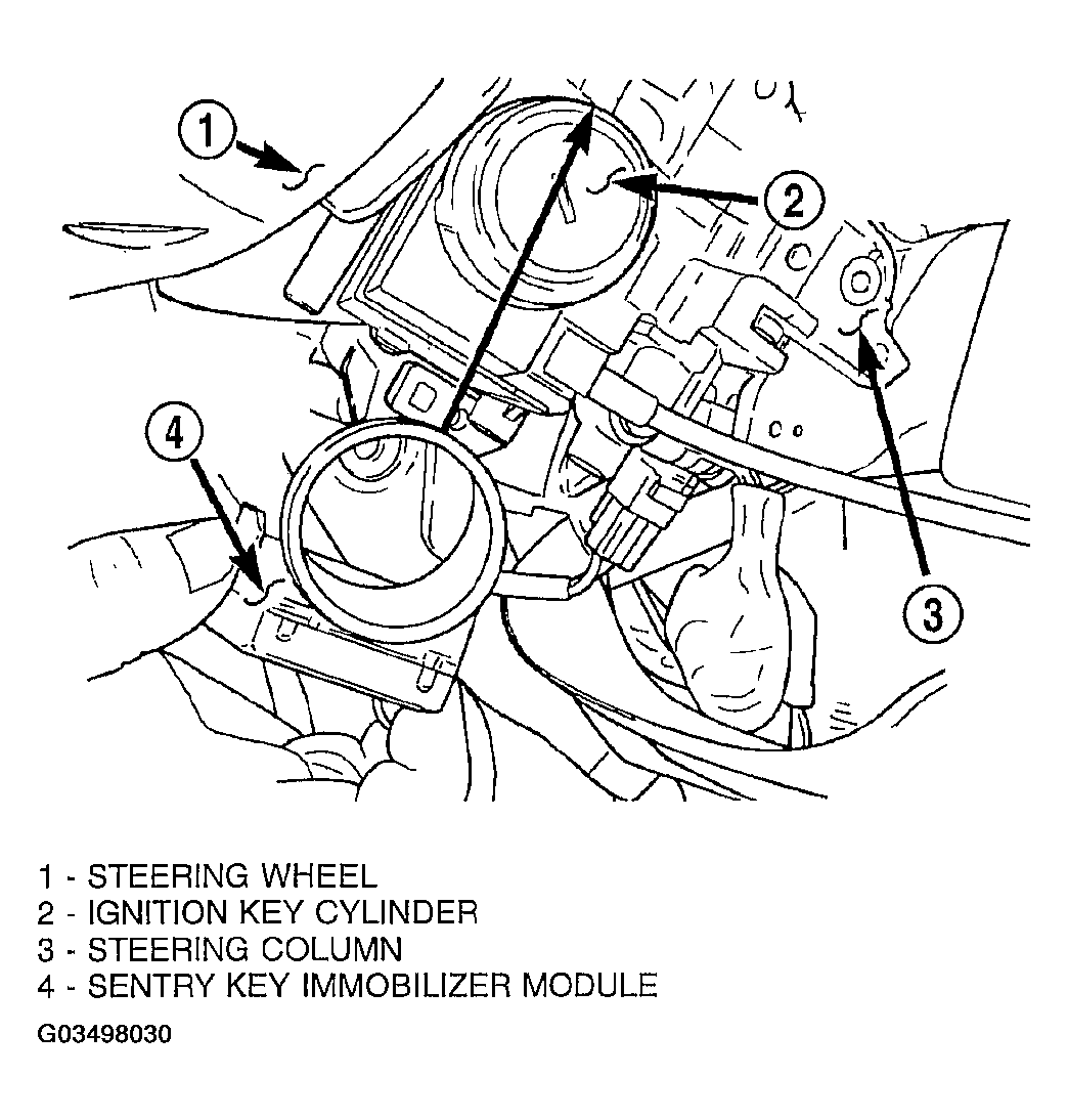 When the ignition switch is turned to the ON or START positions, the SKIM transmits an RF signal to excite the Sentry Key transponder. The SKIM then listens for a return RF signal from the transponder of the Sentry Key that is inserted in the ignition lock cylinder. If the SKIM receives an RF signal with valid "Secret Key" and transponder identification codes, the SKIM sends a "valid key" message to the PCM over the PCI bus. If the SKIM receives an invalid RF signal or no response, it sends "invalid key" messages to the PCM. The PCM will enable or disable engine operation based upon the status of the SKIM messages.