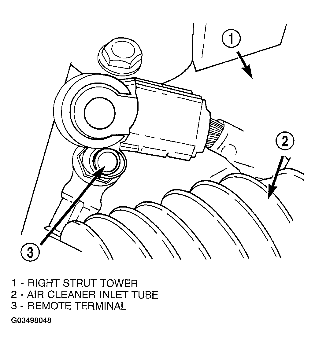 - Disconnect the battery negative remote cable from the remote ground post (Fig 1 ).