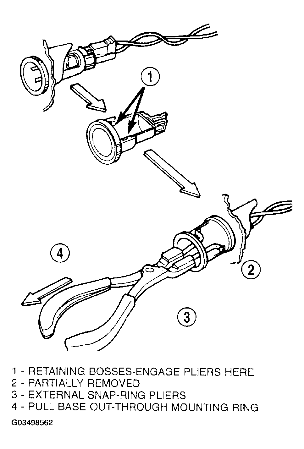 - Pull out the base through mounting ring by gently rocking pliers. A tool can be made to do the same. Refer to (Fig 2