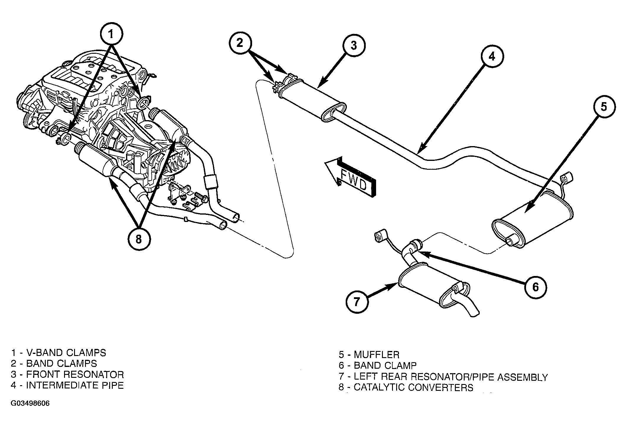 - Install left rear resonator/pipe onto new muffler/front resonator (Figure ) or (Figure ), but do not tighten clamp until exhaust system is installed on vehicle.