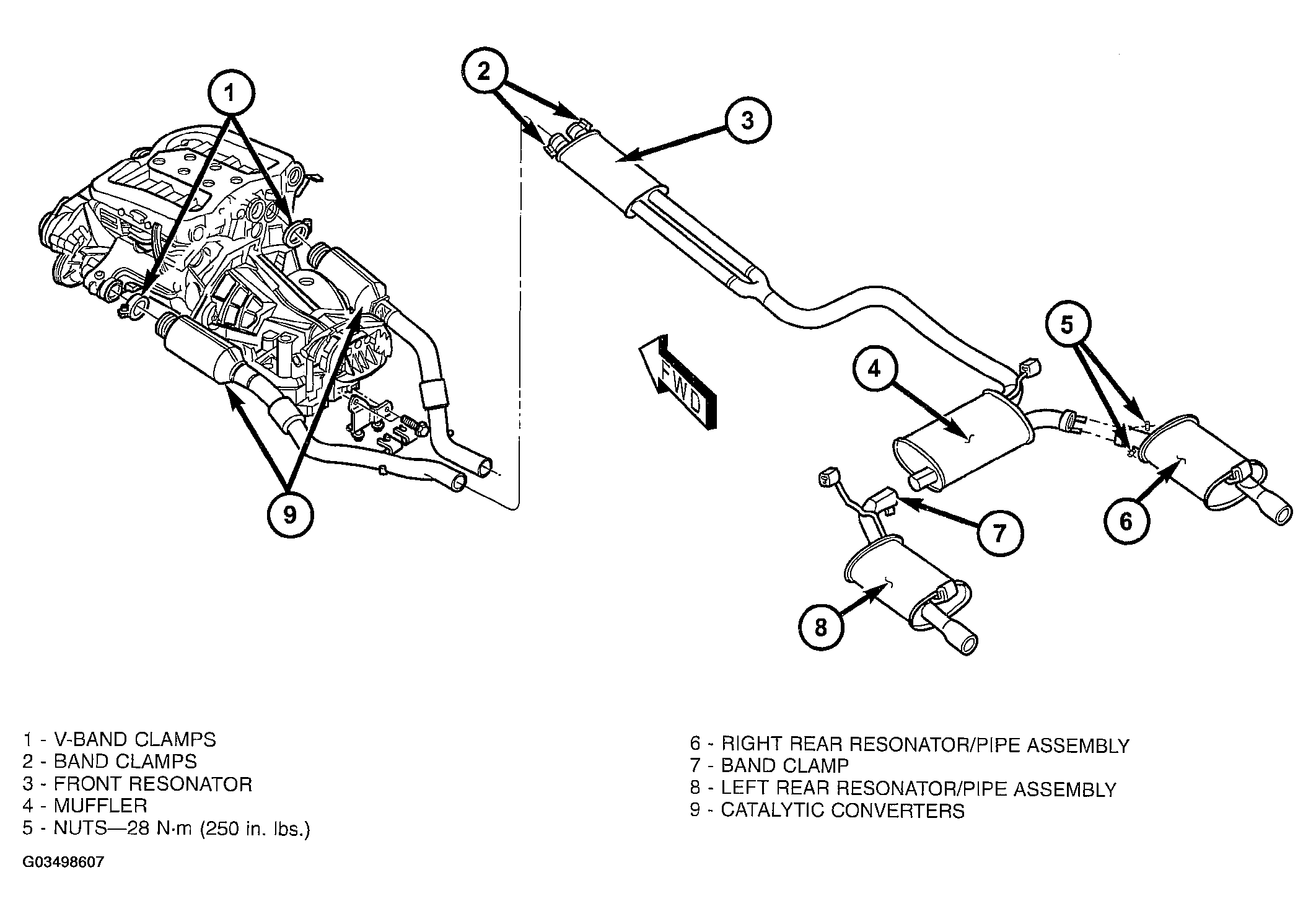- 300M Special: Tighten right rear resonator/ pipe nuts to 28 N.m (250 in.lbs.) (Figure ).
