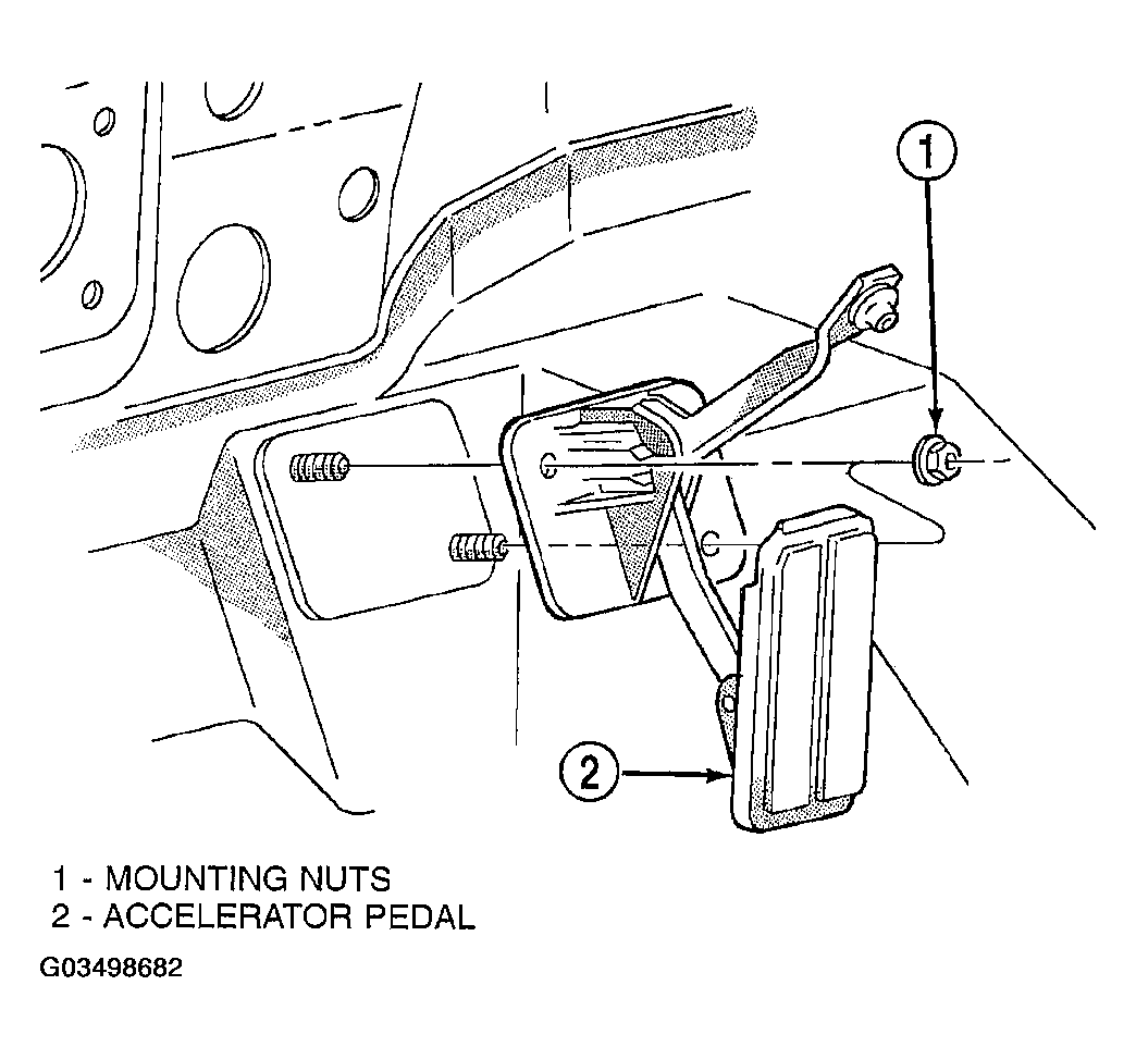 - Working from the passenger compartment, remove nuts from accelerator pedal base (Fig 3). Remove pedal and base from vehicle.