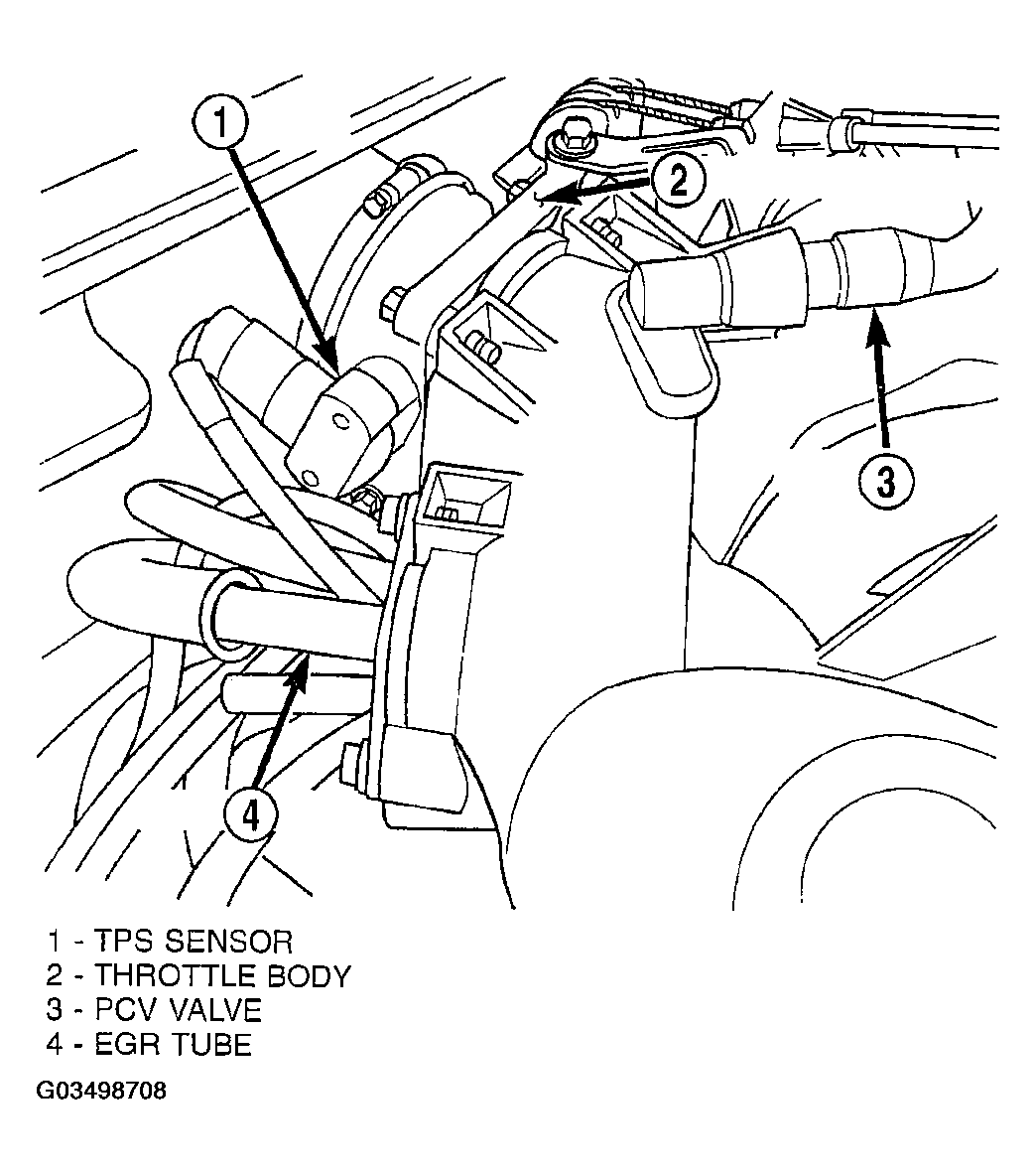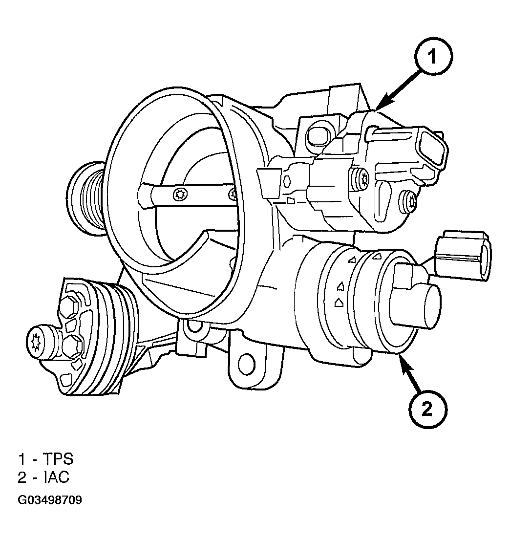 The throttle position sensor mounts to the side of the throttle body (Fig 1) or (Fig 2). The sensor connects to the throttle blade shaft. The TPS is a variable resistor that provides the Powertrain Control Module (PCM) with an input signal (voltage).