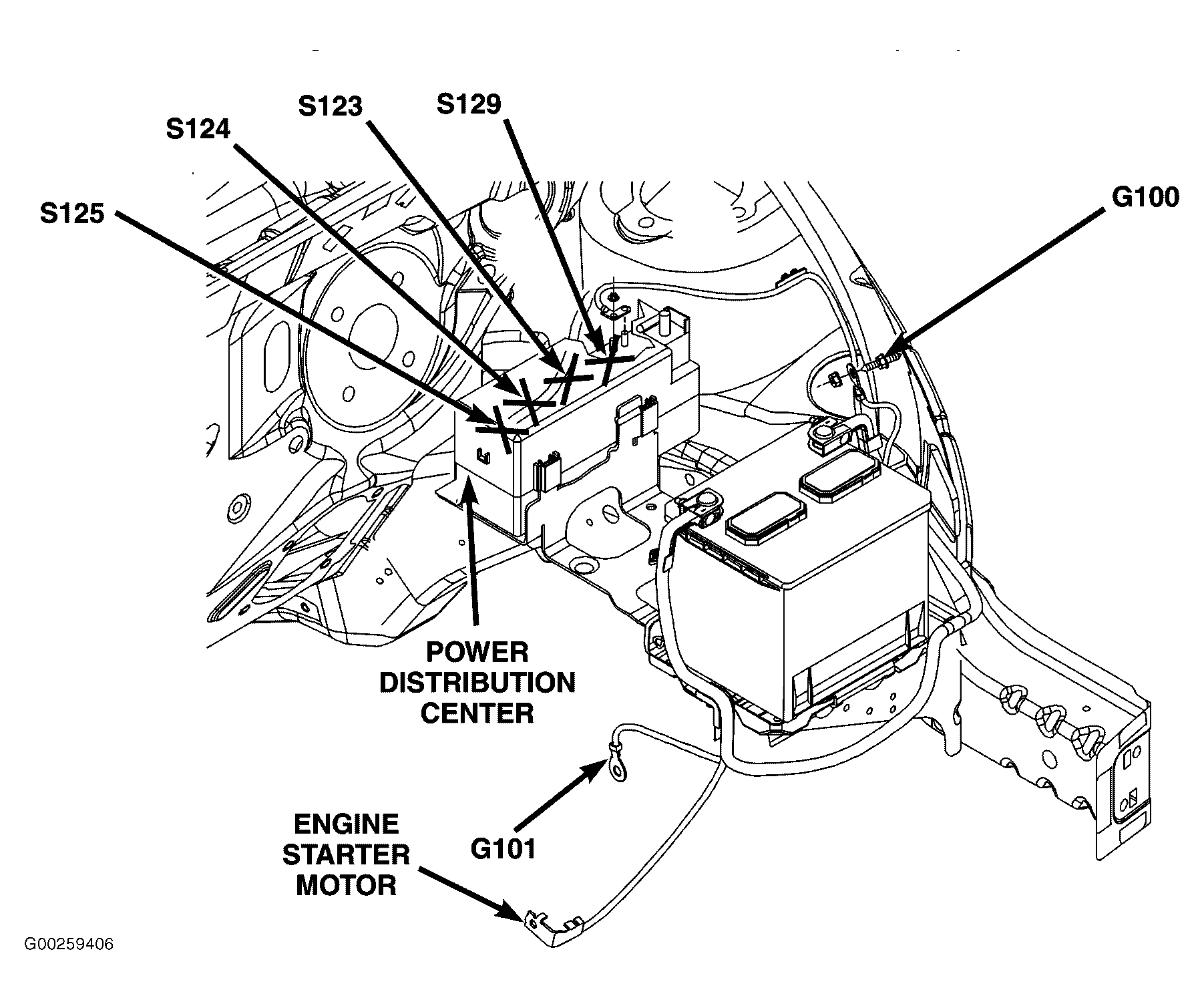 On left side of engine compartment. See Figure