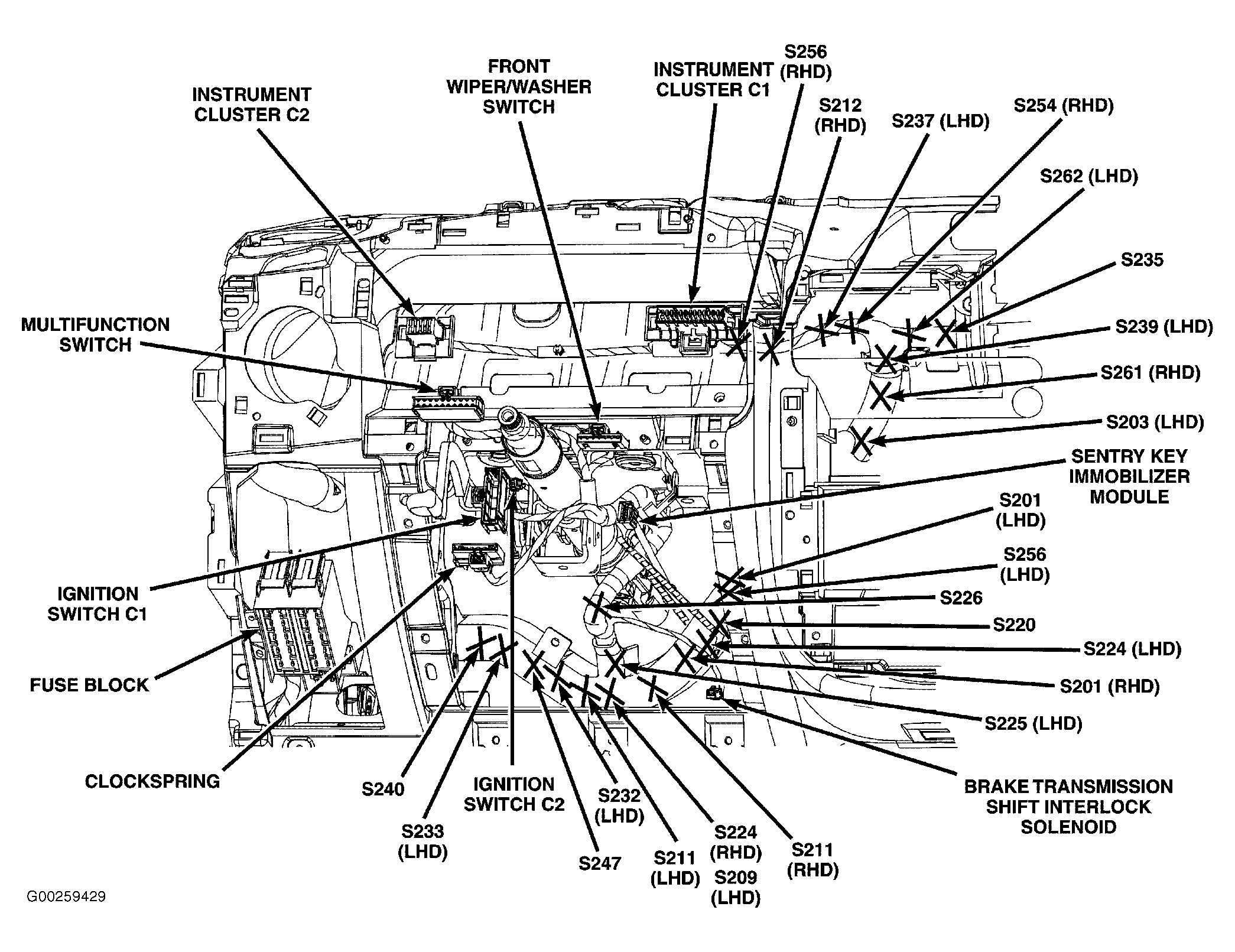 At lower left front of dash. See Figure