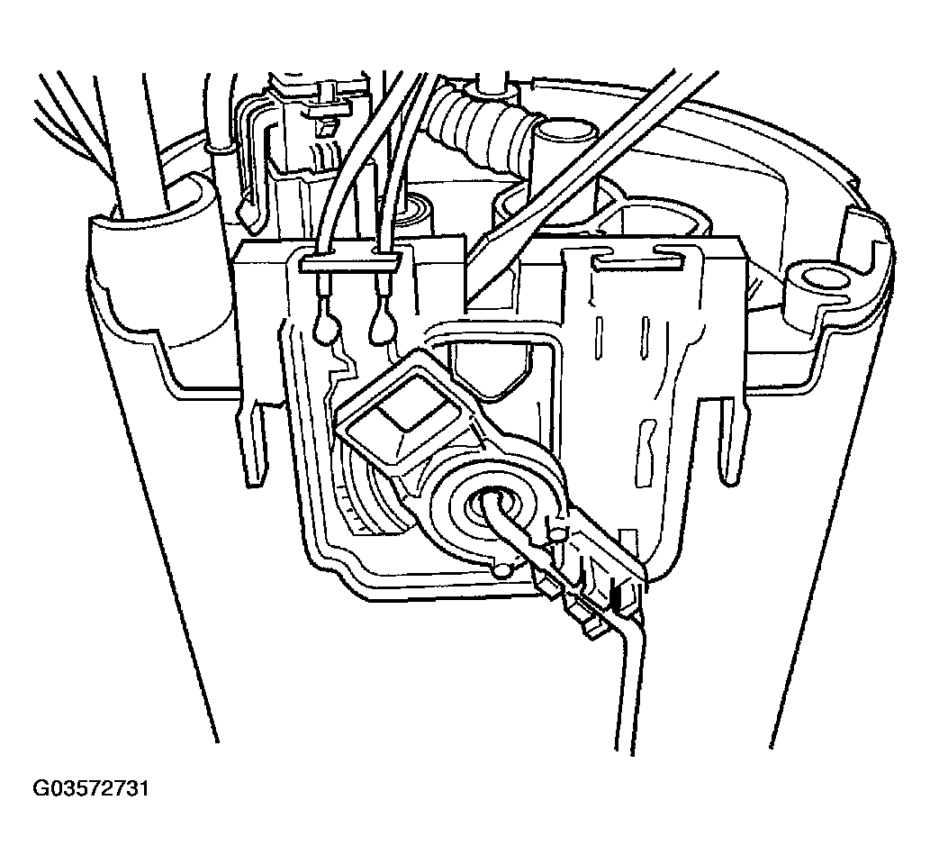 12. Remove the fuel level sending card by prying on the locking tab (Figure) and pulling the card down toward the bottom of the pump module. There are 2 locking tabs on the sending card, one on the front and one on the back (Figure).