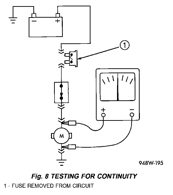 1. Remove the fuse for the circuit being checked or, disconnect the battery.