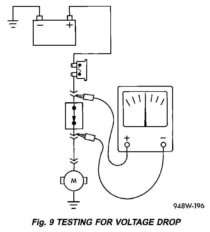 1. Connect the positive lead of the voltmeter to the side of the circuit closest to the battery (Fig. 9).