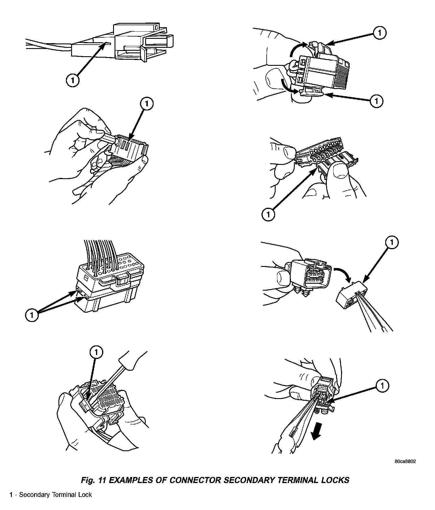 Fig. 11 Examples Of Connector Secondary Terminal Locks: