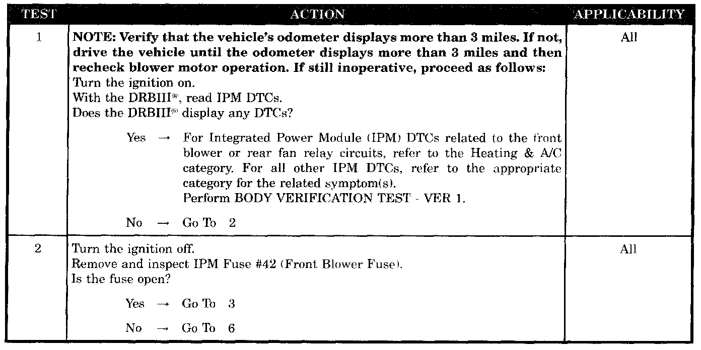 - Fused front blower relay output circuit open