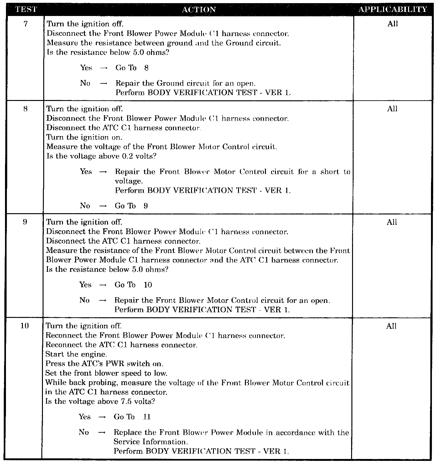 Front Blower Motor Inoperative
