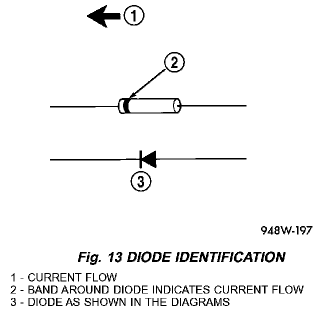 2. Install the new diode in the harness, making sure current flow is correct. If necessary, refer to the appropriate wiring diagram for current flow (Fig. 13).