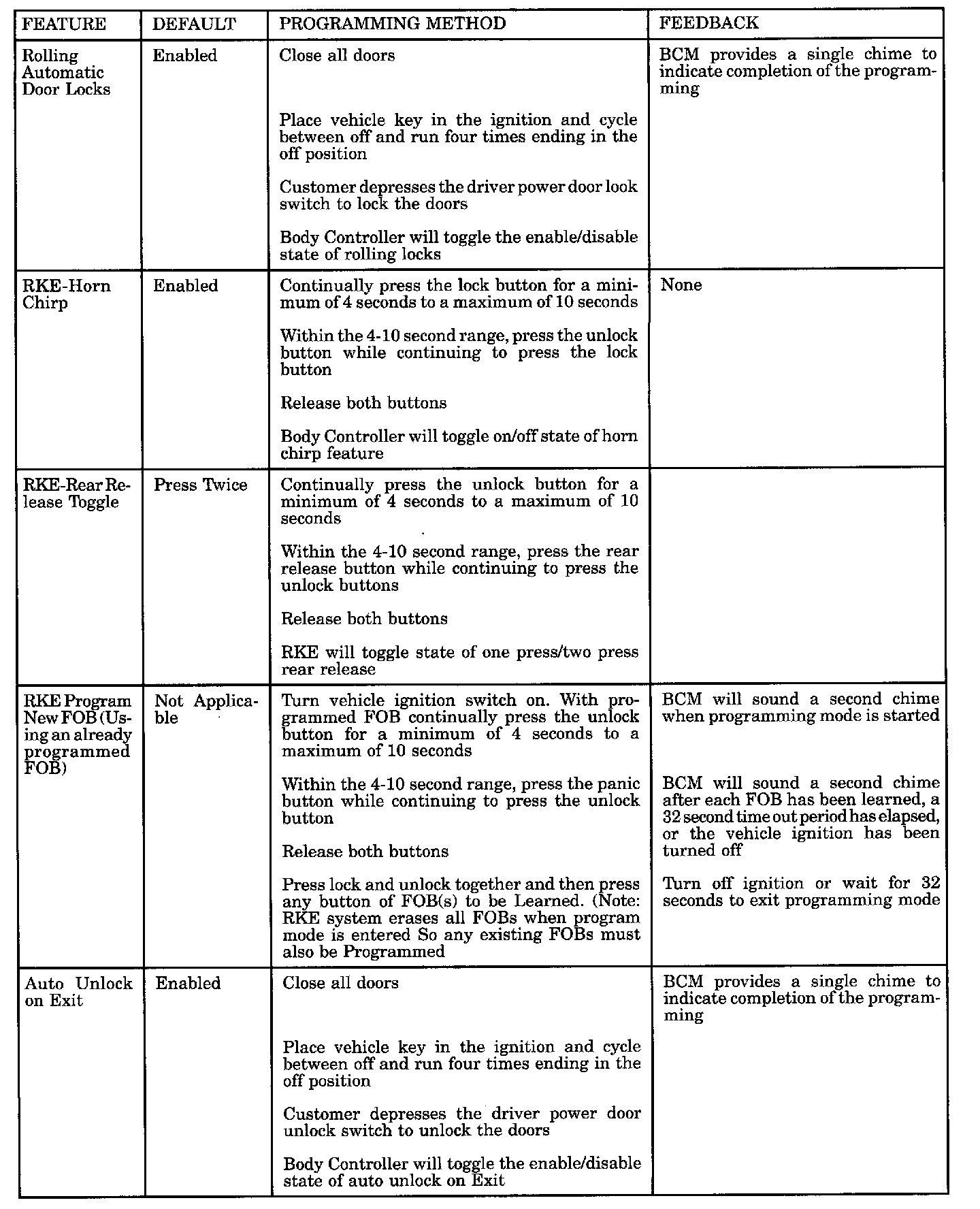 - Door Lock Inhibit (key in ignition or headlamps/park lamps on)
